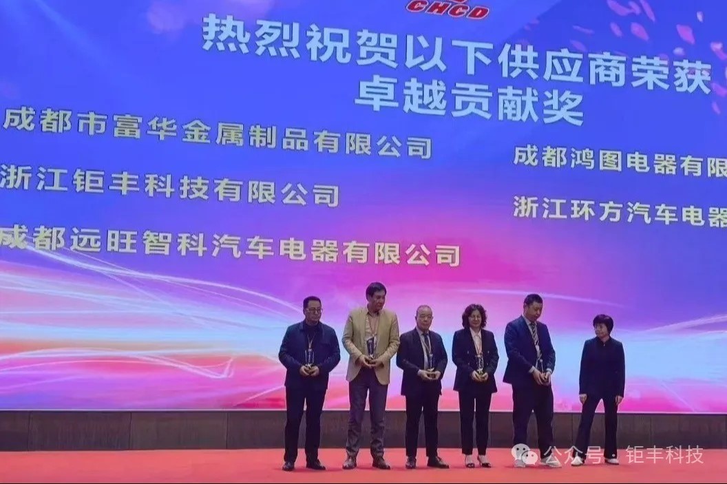 Op 29 maart 2025 gingen vertegenwoordigers van Zhejiang Jufeng Technology Co., Ltd. naar Chengdu om de jaarlijkse leveranciersconferentie van Chengdu Huachuan Electrical Equipment Co., Ltd. bij te wonen en wonnen de "Excellent Contribution Award".
