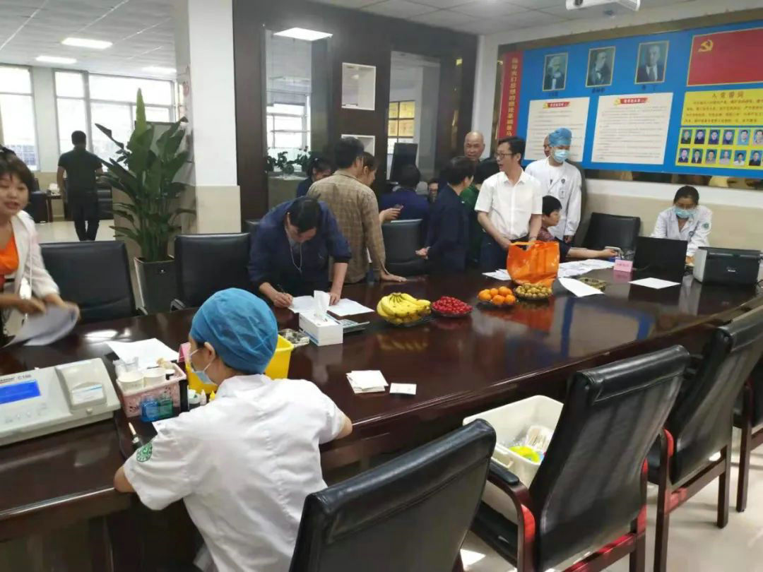 De foto toont de bloedtestlocatie van de vrijwillige bloeddonatiemedewerkers van het bedrijf